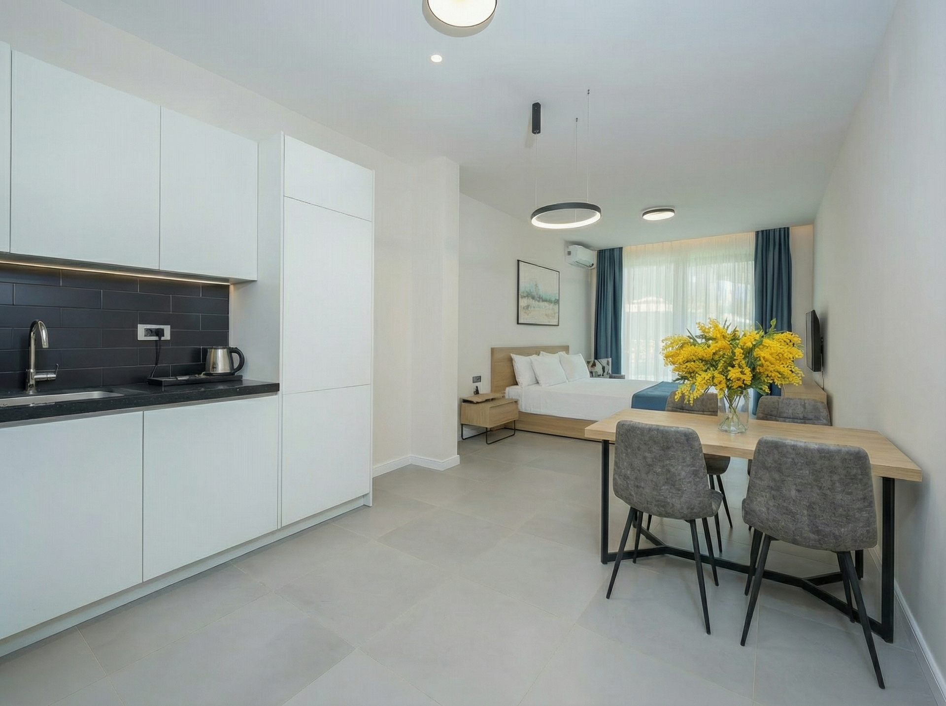 Her biri evin tüm konforlarını sunan ve ek hizmetlerin rahatlığıyla eşleştirilmiş tam donanımlı bir dairedir.
